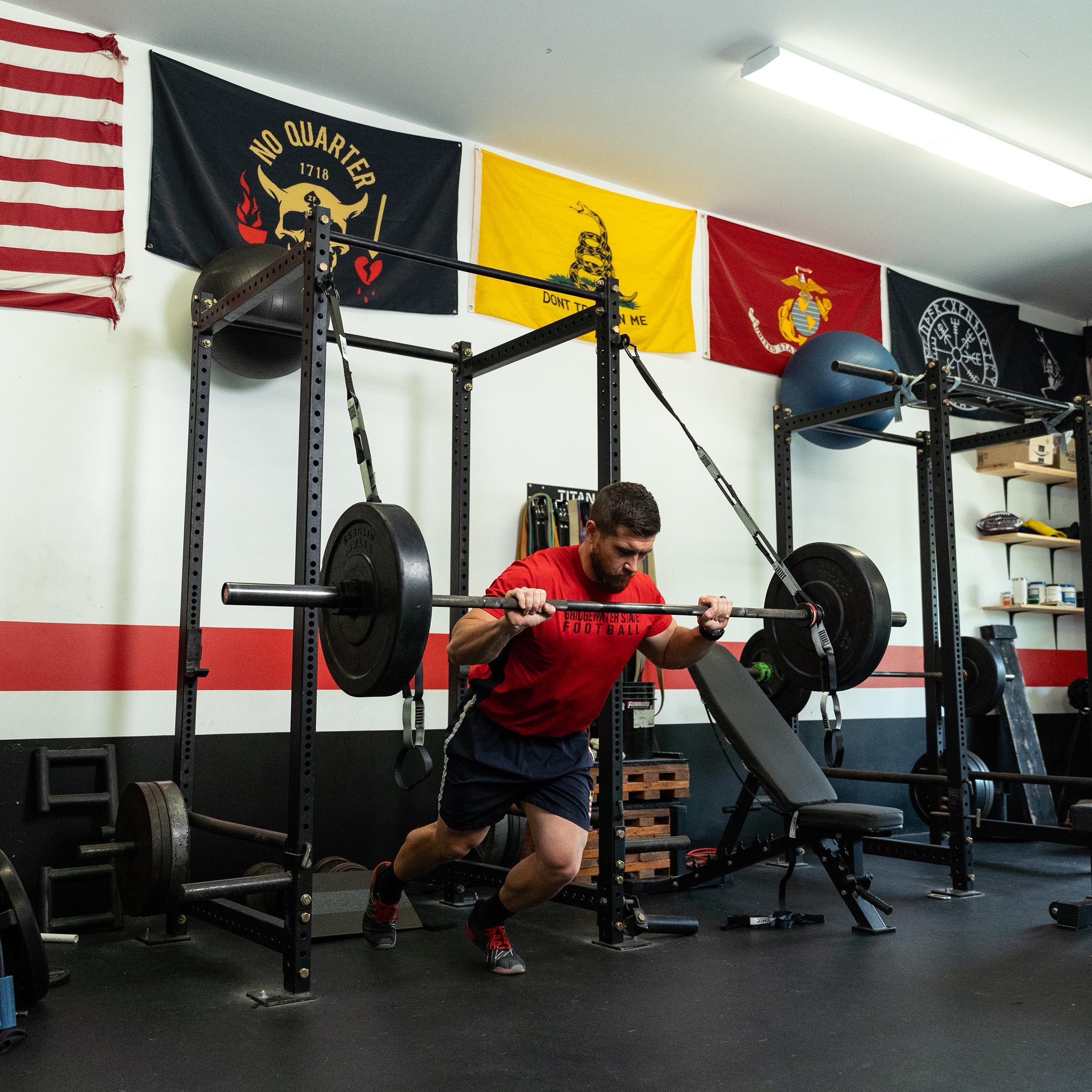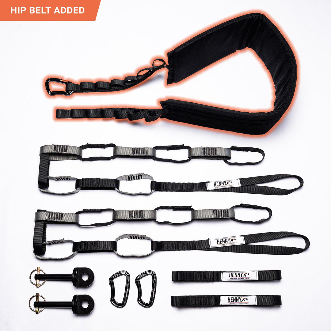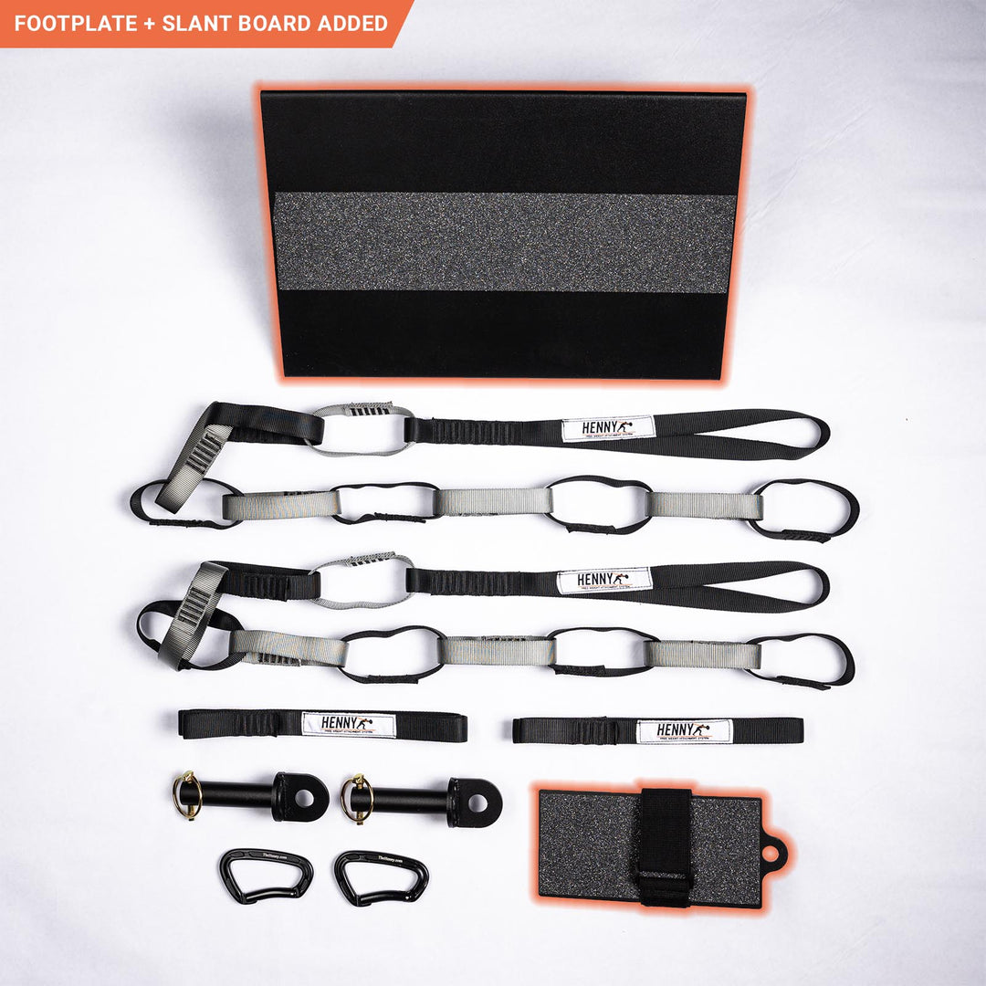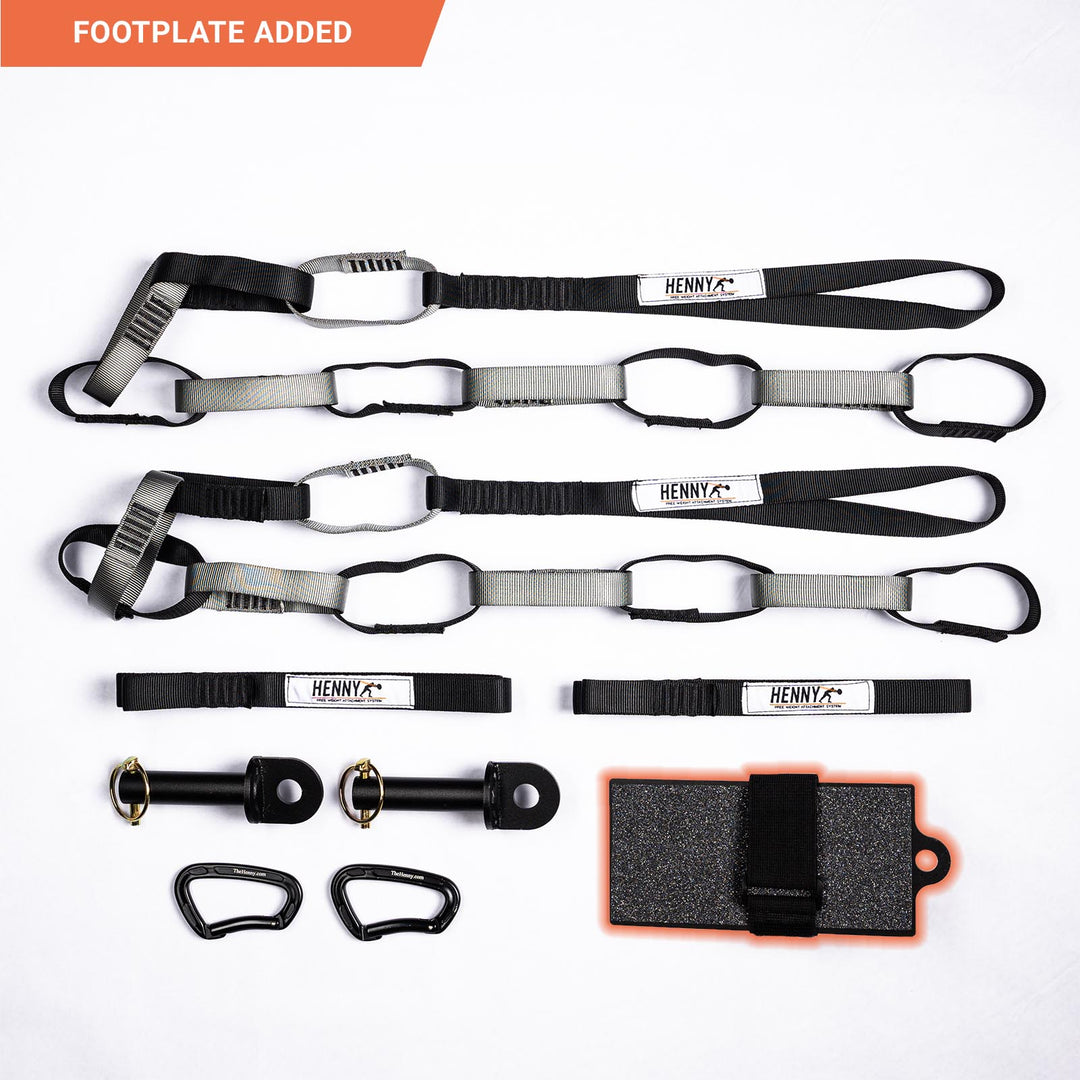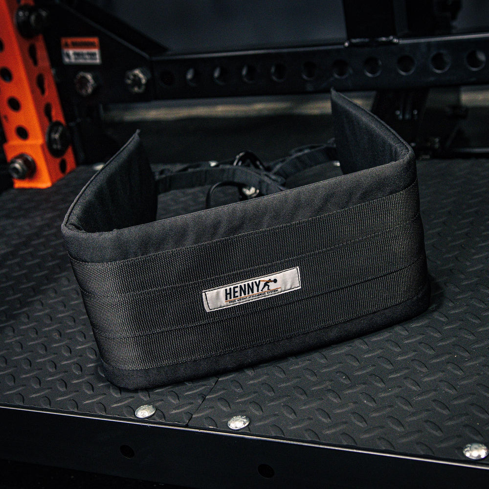 Felt weight refers to the actual amount of weight felt by the lifter when performing exercises. We have found that the load ranges between 60 to 80% of the actual weight on most Henny exercises. The height that you place the barbell and how far in front of the rack that the lifter stands will influence the felt weight. For example, in order to maximize the felt load on a standing row, the lifter can place the barbell low on the Henny loops and then walk several steps back from the front of the rack, this will create a more vertical barbell path and will provide 80% of the actual barbell load in standing row movement.